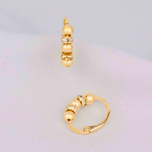 Candonga ovalada con diseño de balines de 4 mm y micro circones intercalados, elaborada en oro laminado 18k. Brilla con un equilibrio entre lo clásico y lo moderno, ideal para quienes aman los detalles sutiles y el toque de luz del circón.