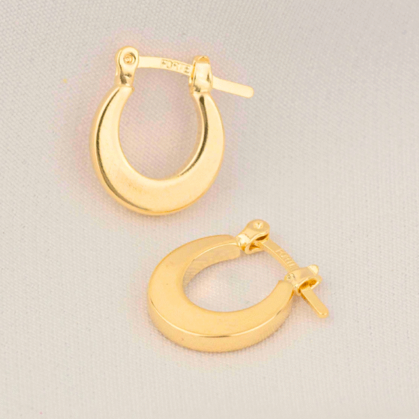 Candonga Tahi de 1.3 cm y 3 mm en oro laminado 18k. Su diseño compacto y pulido la convierte en una pieza ideal para el uso diario. Elegante, ligera y resistente, perfecta para quienes prefieren accesorios discretos con brillo sutil.