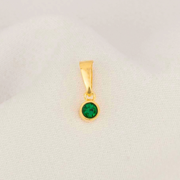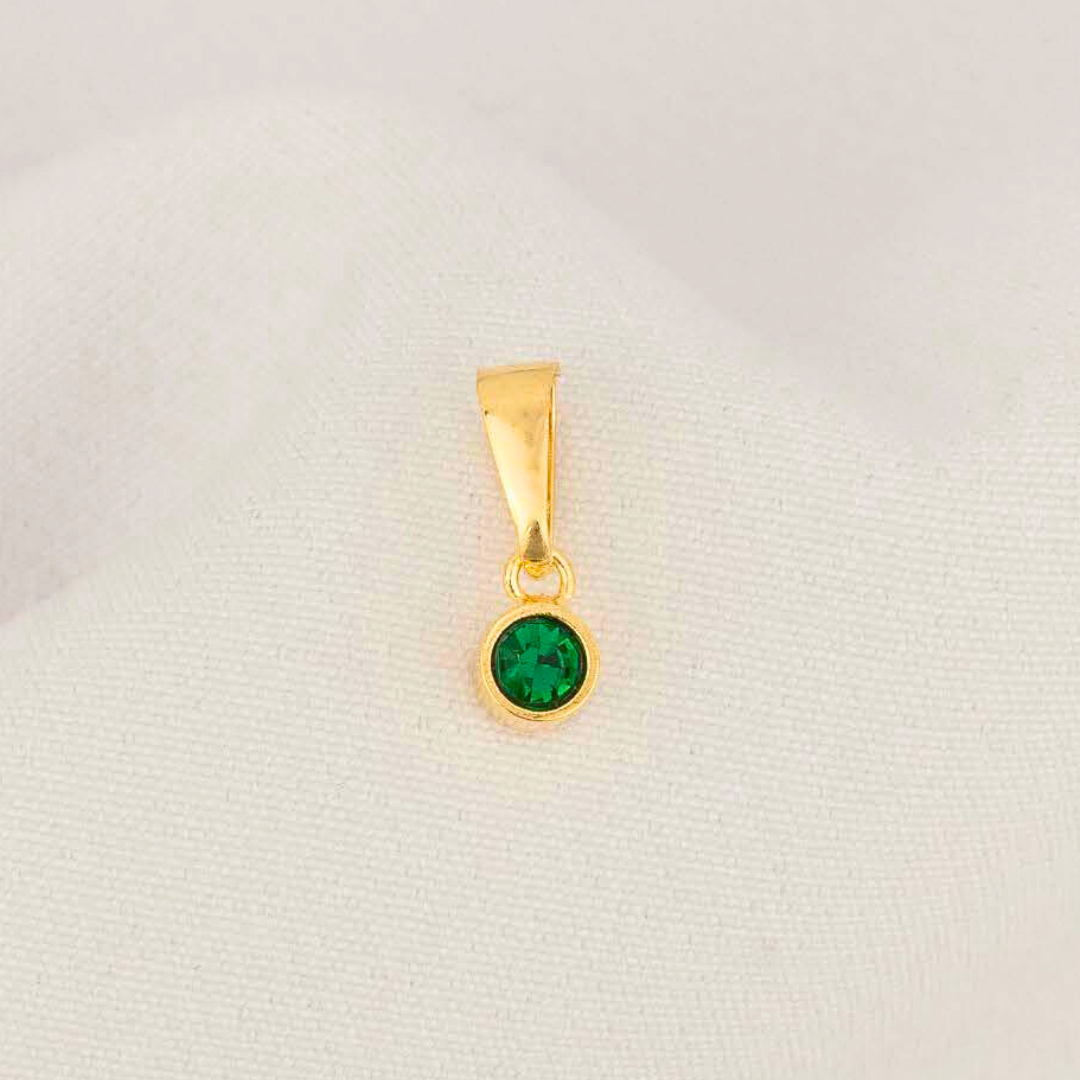 Dije con piedra esmeralda de 4mm en oro laminado 18k. Su tono verde intenso refleja elegancia y frescura, ideal para complementar cadenas finas o pulseras. Una joya sutil y refinada que aporta un toque de color natural a cualquier look.